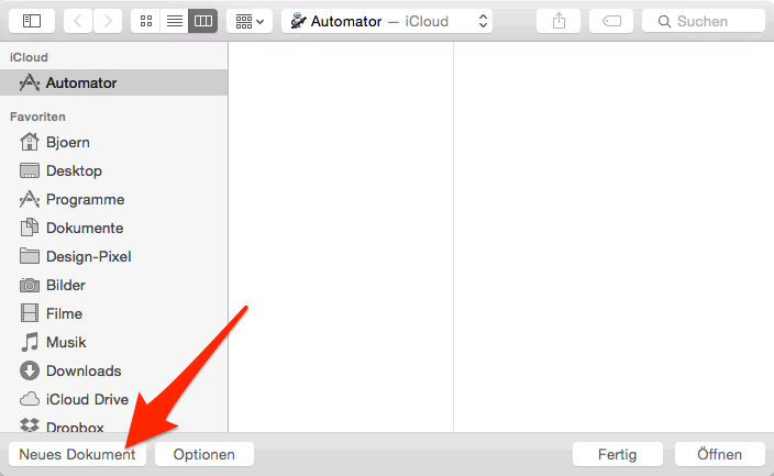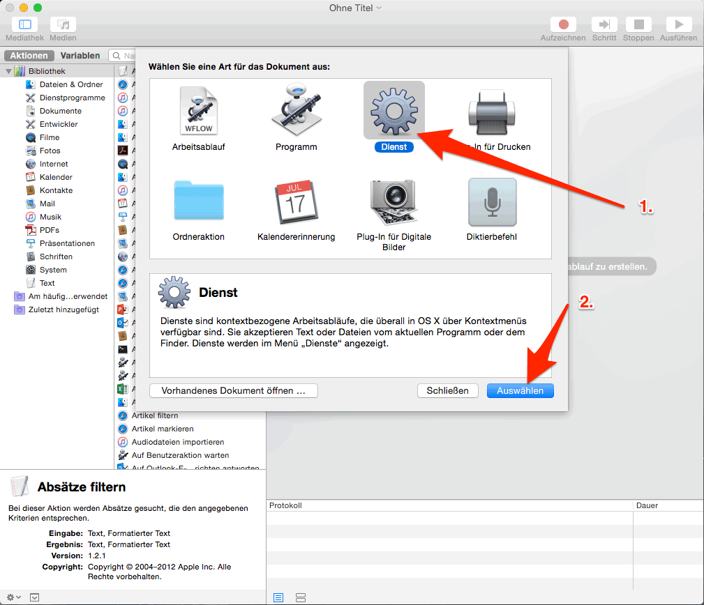 - Im Automator den „Dienst” wählen