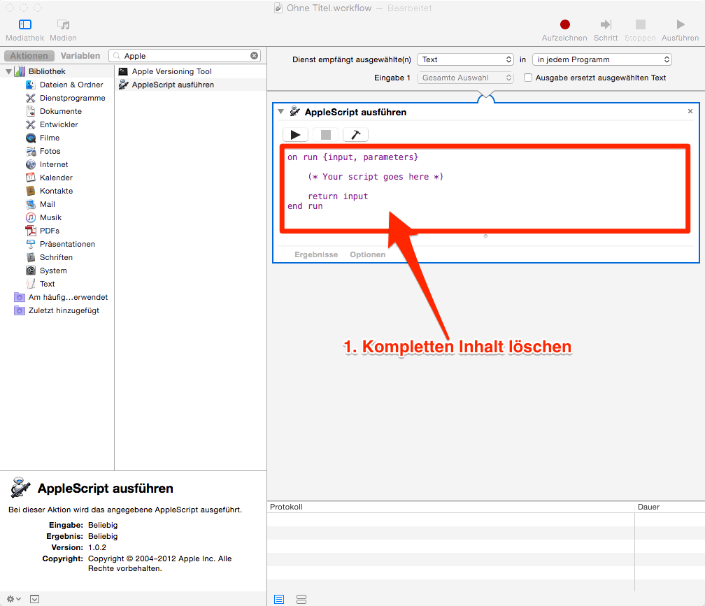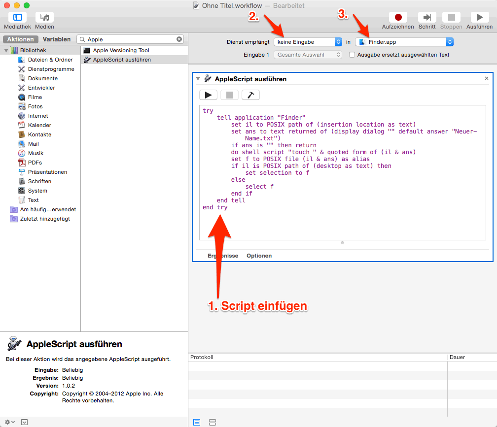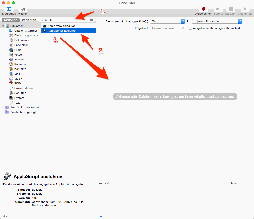 - In der Suche nach „AppleScript ausführen” suchen