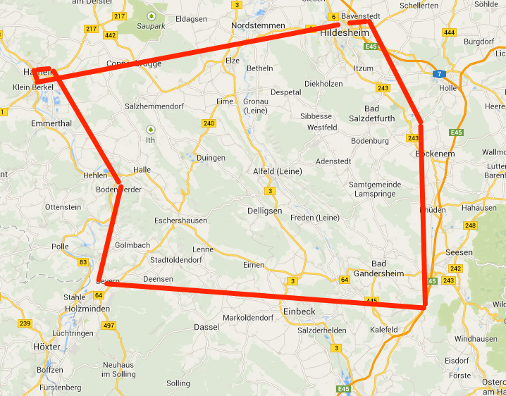 Hildesheim EDVM 25-> Coppenbrügge -> Hameln -> Bodenwerder -> Einbeck -> Bad Gandersheim -> Bad Salzdetfurth -> Hildesheim -> EDVM 25